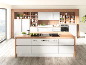 Pri modelu Silbermond se združijo individualne rešitve, najvišja kakovost in futurističen dizajn. Ličnice brez ročajev (okrasna ročajna letev v barvi Alu, Fliederweiß, Magnolie, Cerros, Anthrazit) v povezavi s prvovrstnimi steklenimi elementi omogočajo, da so vaše dragocenosti v kuhinji vidne. Spretno zasnovana kuhinja je tako prava lepotica in vredna pogleda.